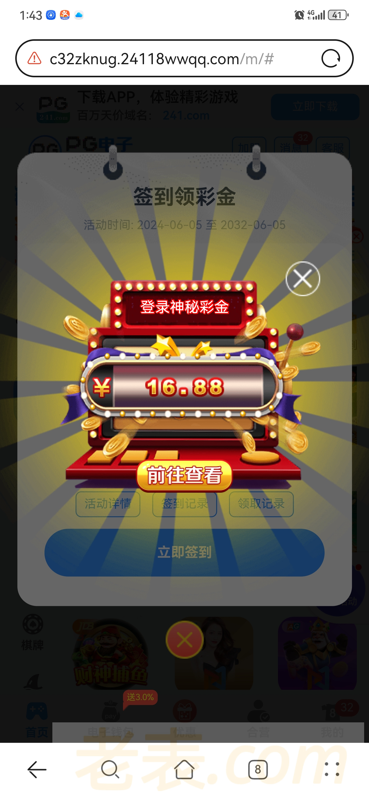 打电话来的,回访彩金,送了16,充值过上去看看