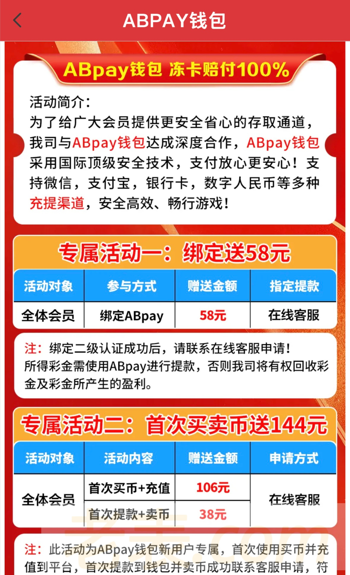 新用户下载app在注册,联系在线客服领49,绑定AB钱包在送58!具体自测!