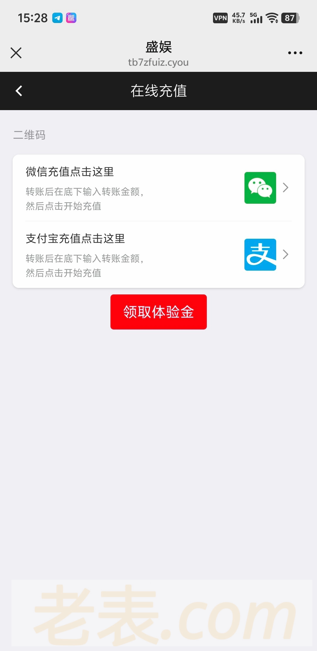 用微信扫码登录点充值领取体验金秒到28打到88下28现金